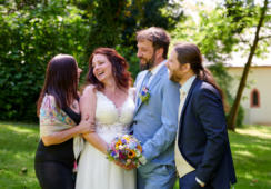 Das Paar aus Eschborn gab sich im Standesamt in seiner Heimatstadt das Ja-Wort. Die anschließende Feier fand ebenfallsin Eschborn - in der bekannten Event-Location „Vespergärtchen“- statt. Das Vespergärtchen bot der Hochzeitsgesellschaftoptimale Bedingungen, um in entspannter Atmosphäre eine tolle Sommer-Hochzeit zu feiern.Für die Hochzeitsreportage - vom morgendlichen Getting Ready bis weit nach Mitternacht - wurde das Paket Diamant gewählt.
