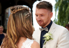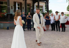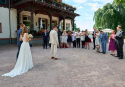 Das Brautpaar hat sich für die fotografische Begleitung seiner standesamtlichen Trauung in Königstein für das Paket Gold entschieden.Den First Look zusammen mit ihren Gästen zu erleben, war ihnen ein besonderes Anliegen. Fotos von der Trauung werden auf Wunschdes Paares hier nicht gezeigt. Das Brautpaarshooting fand bei strahlendem Sonnenschein im angrenzenden Park statt.