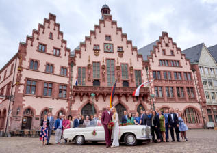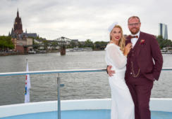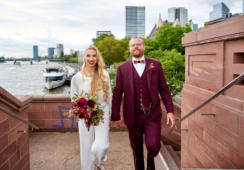 Der Frankfurter Römerberg ist ein ganz besonderer Platz im Herzen Frankfurts. Sich im geschichtsträchtigen Rathaus- dem Römer - das Ja-Wort zu geben, für gebürtige Frankfurter ein besonderes Ereignis. Das Brautpaarshooting fand sowohl imhistorischen Ambiente des Römerbergs, als auch auf dem Eisernen Steg und während einer Schifffahrt auf dem Main statt.Für die fotografische Dokumentation wurde vom Brautpaar das Paket Platin gewählt.