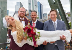DerFrankfurterRömerbergisteinganzbesondererPlatz imHerzenFrankfurts.Sichimgeschichtsträchtigen Rathaus-demRömer-dasJa-Wortzugeben,für gebürtigeFrankfurtereinbesonderesEreignis.Das Brautpaarshootingfandsowohlimhistorischen AmbientedesRömerbergs,alsauchaufdemEisernen Steg und während einer Schifffahrt auf dem Main statt.FürdiefotografischeDokumentationwurdevom Brautpaar das Paket Platin gewählt.